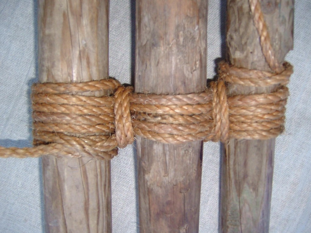 This lashing is better used when the spars are to be set diagonally as in the diagram normally used on spars that cross in the center of a trestle or when the strain on them tends to push their ends apart.